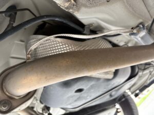 1つ目は、マフラーの出口付近にステンレスバンドでマフラーと共締め